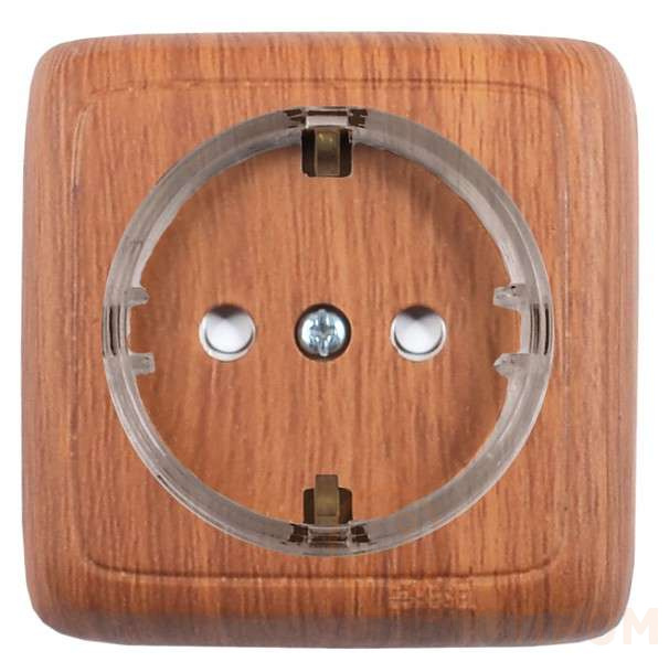 Розетка 1-м ОП Альфа 16А IP20 с заземл. защ. шторки с изолир. пластиной (стакан) дуб HEGEL РА16-174-05