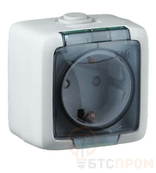 –Розетка 1-м ОП Альфа 16А IP44 250В с заземл. защ. шторки с крышкой бел. HEGEL РА16-212