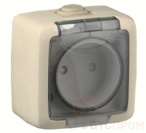 Розетка 1-м ОП Альфа 16А IP44 брызгозащ. без заземл. без защ шторок с крышкой сл. кость HEGEL РА16-201-01