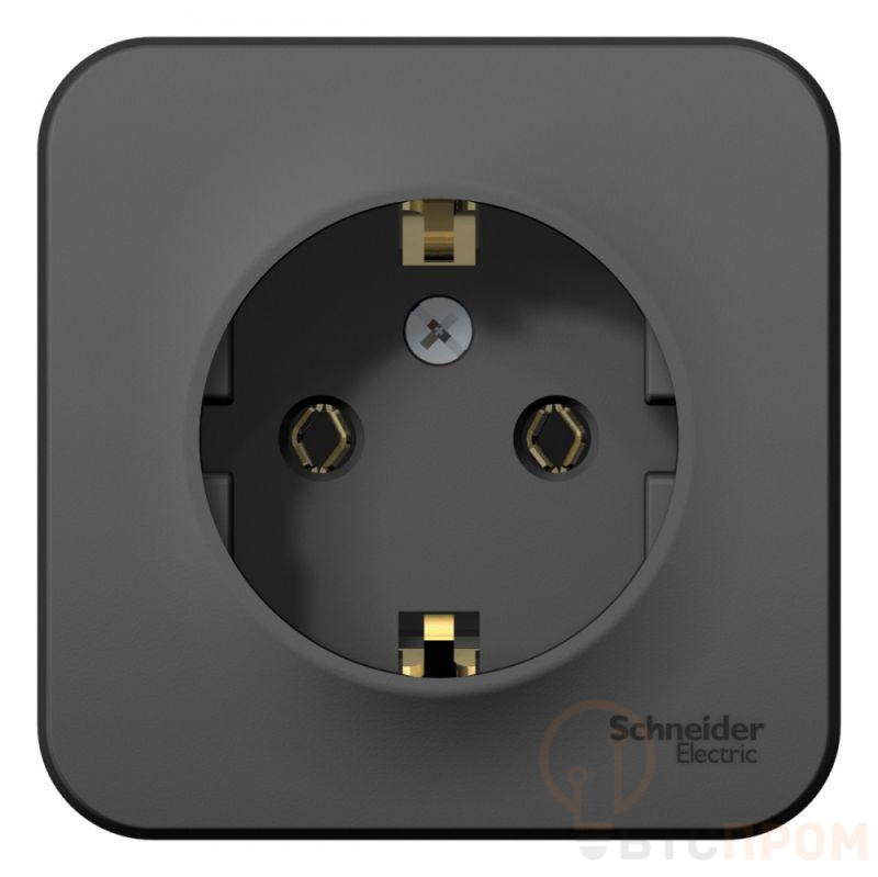 Розетка Systeme Electric (ранее Schneider Electric) BLANCA (антрацит, открытой установки) одноместная с заземлением, без шторок, предназначена для сетей до 250В, на ток до 16А. Заземление обеспечивает безопасность при косвенном прикосновении. Она изготовлена из ABS-пластика, проста в установке и удобна в применении.