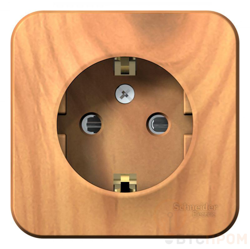Розетка Systeme Electric (ранее Schneider Electric) BLANCA (ясень, открытой установки) одноместная с заземлением, шторками и изолирующей пластиной предназначена для сетей до 250В, на ток до 16А. Шторки открываются только при одновременном равномерном давлении в оба отверстия и препятствуют проникновению посторонних предметов. Они обеспечат дополнительную безопасность в доме, где есть дети. Изделия цвета Ясень обладают уникальным рисунком, напоминающим древесный сруб.
