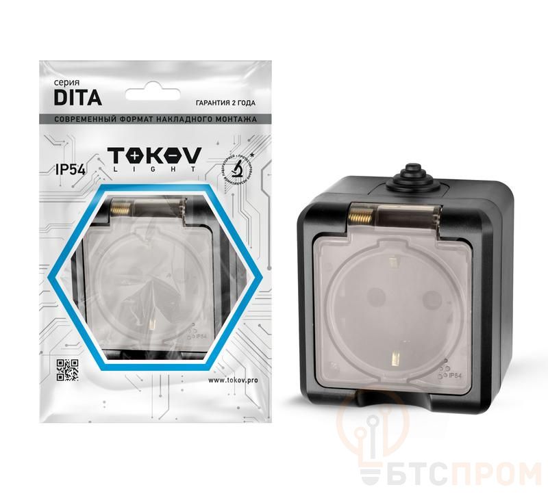 Розетка 1-м ОП Dita 16А IP54 250В с заземл. с прозр. крышкой карбон TOKOV ELECTRIC TKL-DT-R1Z-C14T-IP54