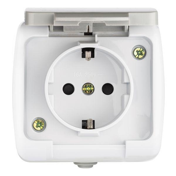 Розетка одноместная EKF серии Мурманск с заземлением, со шторками и крышкой позволяет организовать электроснабжение в условиях высокой влажности и пыльных помещениях, на улице при условии установки под навесом. Ступенчатые герметичные вводы с двух сторон изделия обеспечивают надежную защиту, позволяя использовать устройство в агрессивных условиях.