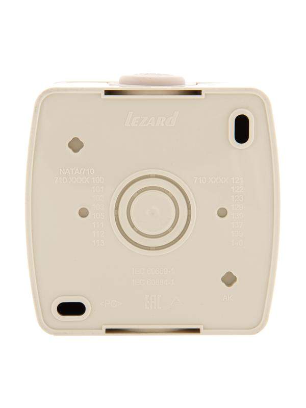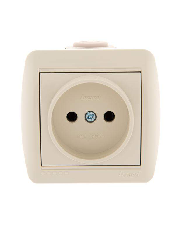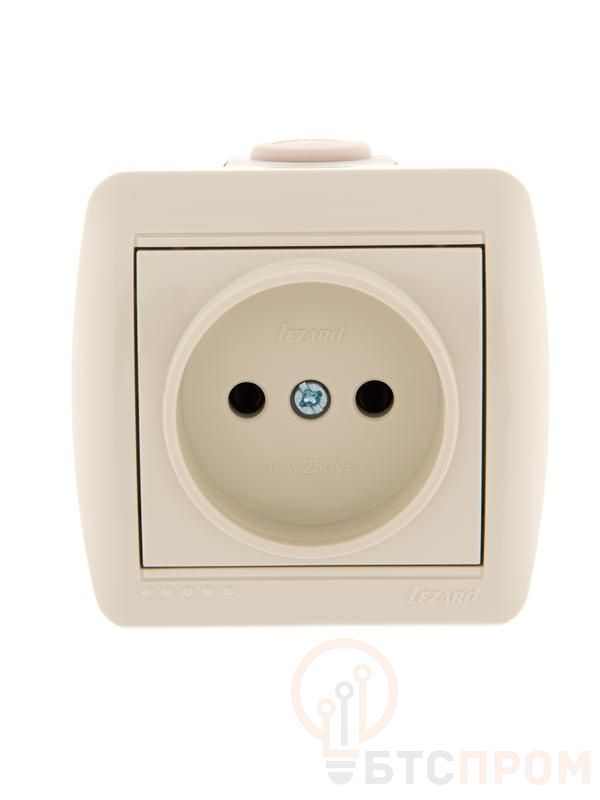 Розетка 1-м ОП Ната керам. без заземл. крем. Lezard 710-0300-121 представляет собой электроустановочный механизм одноместной розетки со стороной, равной 90 мм, кремового цвета. Корпус изготовлен из негорючего пластика, устойчивого к воздействию ультрафиолетовых лучей, поэтому фасадная панель сохраняет свой первоначальный цвет более продолжительное время и не желтеет в процессе эксплуатации), более устойчив к механическим повреждениям (царапинам и проч.), высокой температуре, не плавится и не чернеет. Основание керамическое. Монтируется на глубину 50 мм, на поверхность стены.