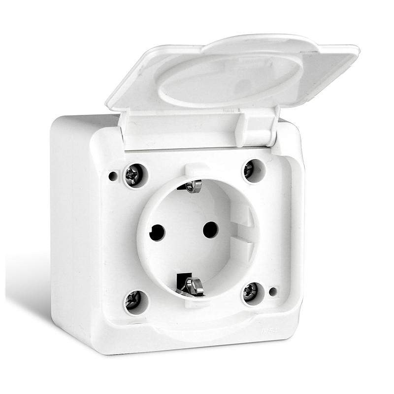 Розетка 1-ая (открытая, б/з, брызг. защ.) белая, Пралеска Аква, Bylectrica (IP54 пылебрызгозащищенные) РА16-296