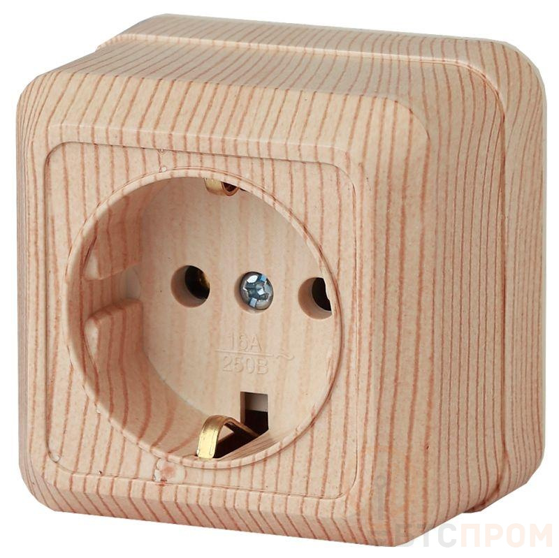 Розетка Intro Quadro 2-202-11 с заземлением 2P+E Schuko, 16А-250В, IP20, ОУ, сосна
