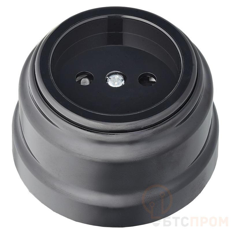 Розетка 1-м ОП РЕТРО 16А без заземл. со шторками Bylectrica РА16-0205 черный фото в каталоге от BTSprom.by