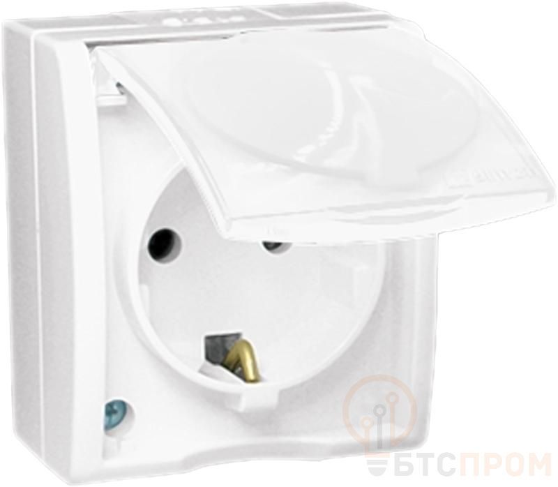 Розетка 1-м ОП Simon15 16А IP54 250В с заземл. Schuko защ. шторки с крышкой винт. клеммы бел. Simon 1594432-030