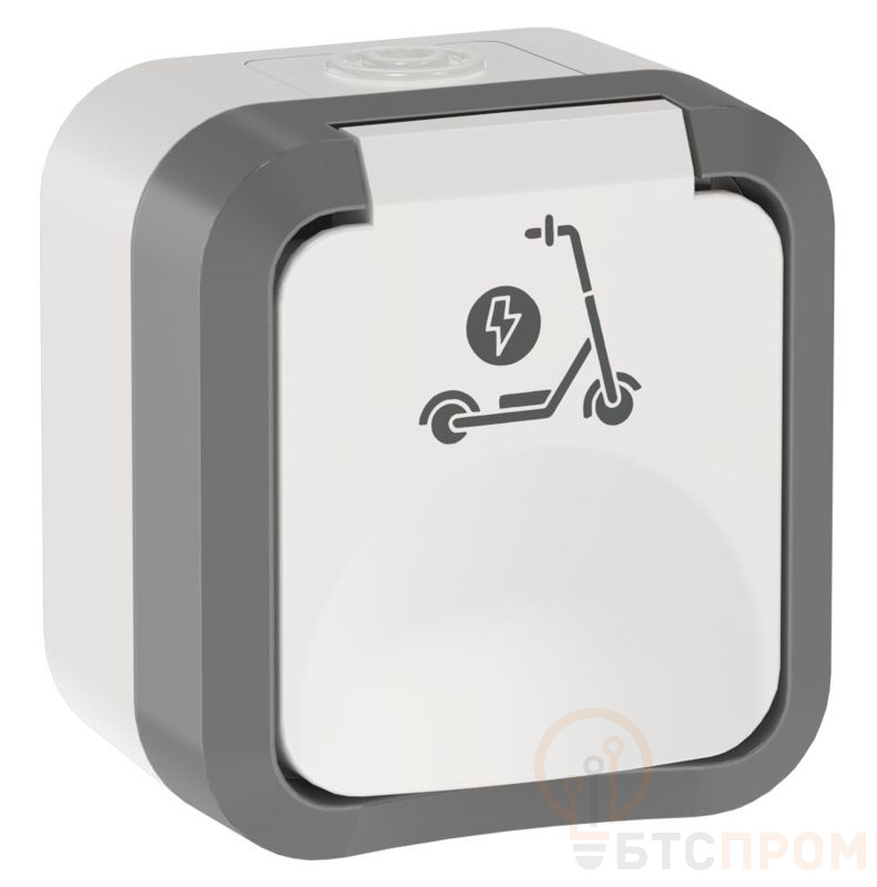 Розетка 1-м ОП TORS TS321 16А IP55 с заземл. защ. шторки с крышкой с иконкой самокат сер./бел. IEK TS-R110-16-55-K41
