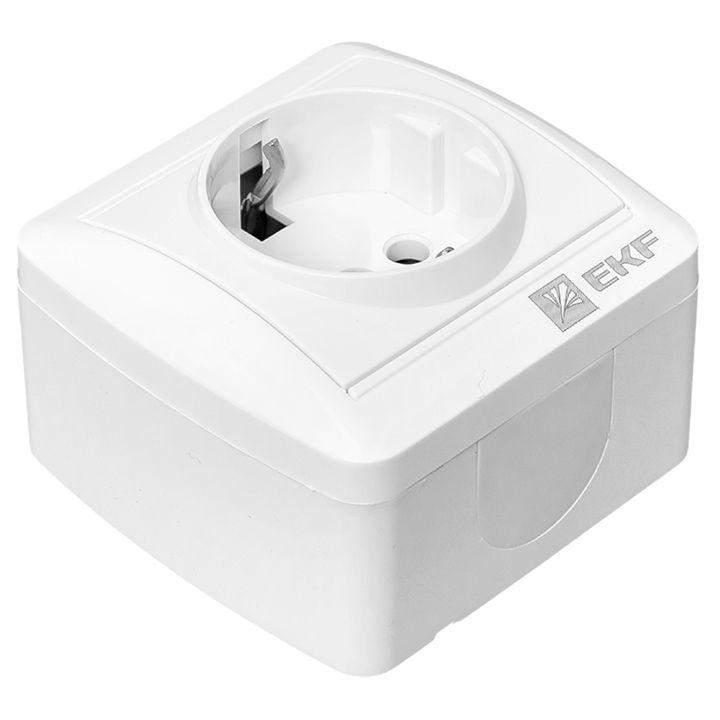 Розетка одноместная EKF серии Владивосток с заземлением и без шторок позволяет организовать электроснабжение в условиях высокой влажности и пыльных помещениях, на улице при условии установки под навесом. Герметичные вводы с двух сторон изделия обеспечивают надежную защиту, позволяя использовать устройство в агрессивных условиях.