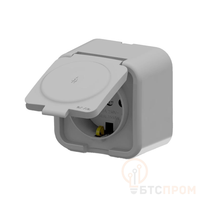 Корпус розетки выполнен из прочного самозатухающего пластика серого цвета. Наличие защитной шторки (крышки) обеспечивает степень защиты IP20, предотвращая случайное проникновение пальцев и крупных частиц, повышая безопасность, особенно в местах, доступных детям. Контакты из луженой латуни гарантируют стабильное соединение и минимальное переходное сопротивление.