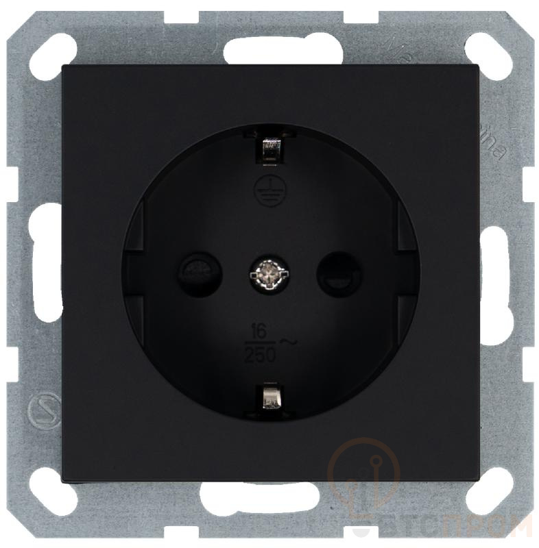 Розетка 1-м Shuko 16А IP20 с заземл. защ. шторки механизм черн. матов. soft touch Jasmart G5501PB