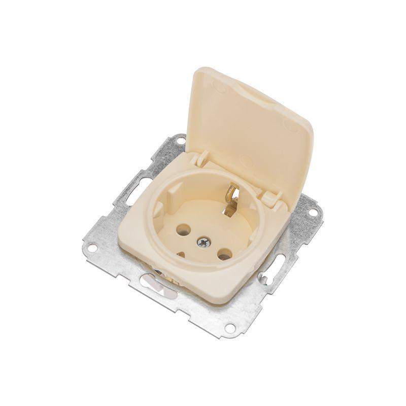 –Розетка 1-м СП DEA 16А с заземл. с крышкой механизм беж. Kranz KR-78-0243