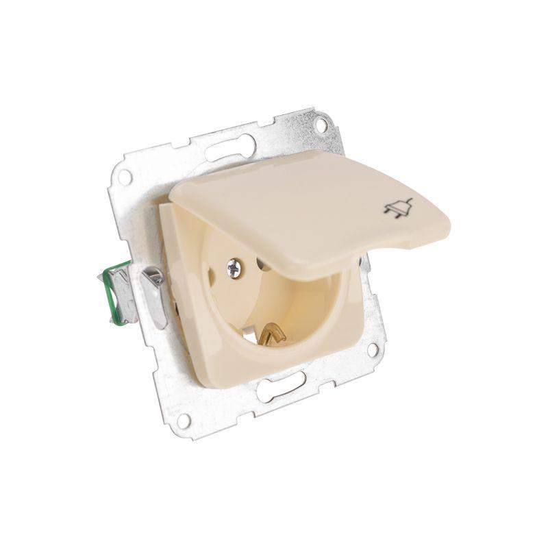 Розетка 1-м СП DEA 16А с заземл. с крышкой механизм беж. Kranz KR-78-0243 фото в каталоге от BTSprom.by