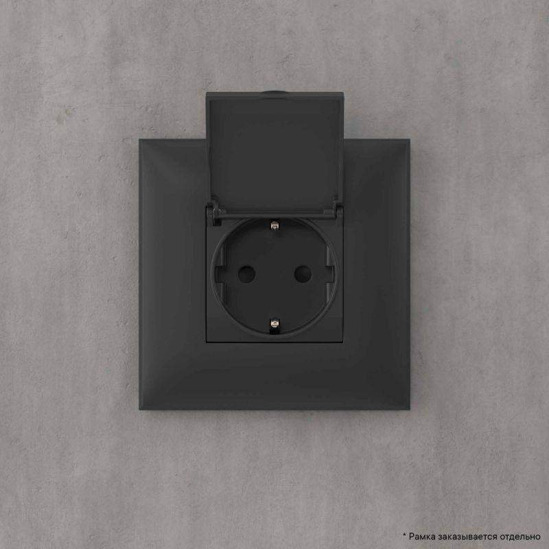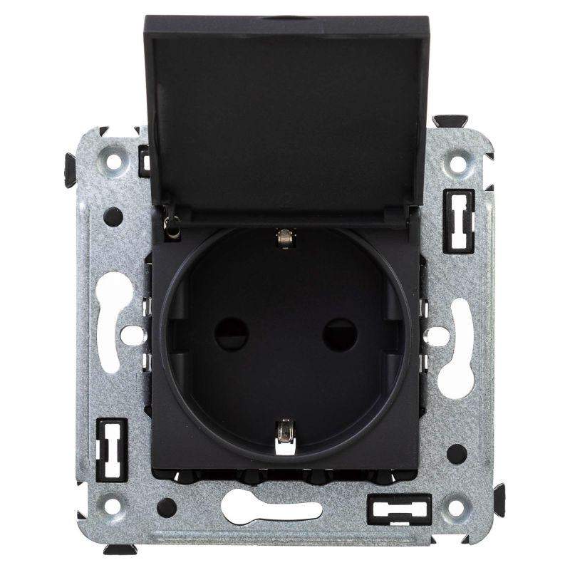 Розетка 1-м СП 2мод. Avanti "Черный матовый" 16А 2P+E защ. шторки с крышкой механизм черн. DKC 4412013