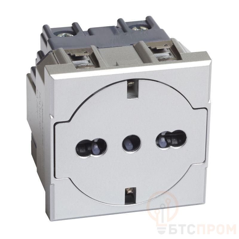 Розетка 1-м СП 2мод. Axolute 16А IP20 250В 2P+E немецк./итальянск. стандарт с плоск. лицев. панелью алюм. Leg BTC HC4140/16F