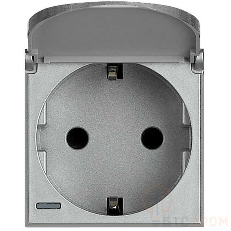 Розетка 1-м СП 2мод. Axolute 16А IP20 250В 2P+E с боков. заземл. Schuko экранир. контакты с крышкой немецк. стандарт безвинт. клеммы алюм. Leg BTC HC4141PW