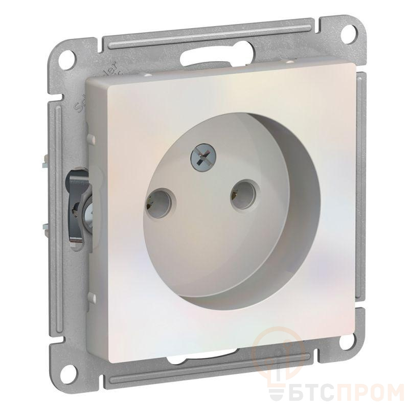 Механизм Systeme Electric (ранее Schneider Electric) серии AtlasDesign в цвете жемчуг розетки одинарной без заземления и без шторок подходит для сетей 250 В, на ток 16 А. - Лицевые детали из качественного ABS-пластика, устойчивого к царапинам и УФ-излучению. - Усиленные прямые монтажные лапки для лучшей фиксации механизма в монтажной коробке.