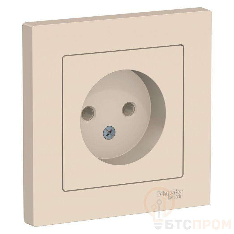 Розетка Systeme Electric (ранее Schneider Electric) серии AtlasDesign (в сборе, цвет бежевый) одинарная без заземления и без шторок подходит для сетей 250 В, на ток 16 А. - Лицевые детали из качественного ABS-пластика, устойчивого к царапинам и УФ-излучению. - Изделие поставляется в комплекте с рамкой того же цвета. - Усиленные прямые монтажные лапки для лучшей фиксации механизма в монтажной коробке.