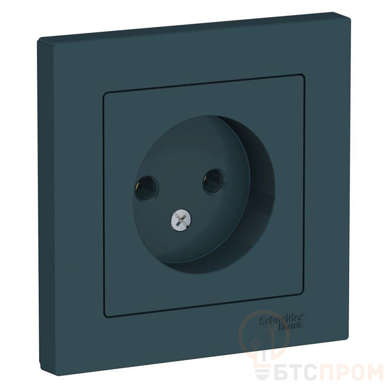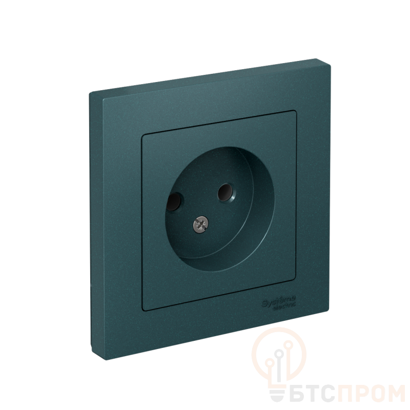 Розетка Systeme Electric (ранее Schneider Electric) серии AtlasDesign (в сборе, цвет изумруд) одинарная без заземления и без шторок подходит для сетей 250 В, на ток 16 А. - Лицевые детали из качественного ABS-пластика, устойчивого к царапинам и УФ-излучению. - Изделие поставляется в комплекте с рамкой того же цвета. - Усиленные прямые монтажные лапки для лучшей фиксации механизма в монтажной коробке.