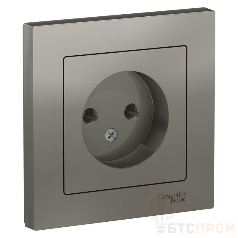 Розетка Systeme Electric (ранее Schneider Electric) серии AtlasDesign (в сборе, цвет сталь) одинарная без заземления и без шторок подходит для сетей 250 В, на ток 16 А. - Лицевые детали из качественного ABS-пластика, устойчивого к царапинам и УФ-излучению. - Изделие поставляется в комплекте с рамкой того же цвета.