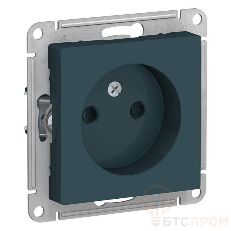 Механизм Systeme Electric (ранее Schneider Electric) серии AtlasDesign в цвете изумруд розетки одинарной без заземления со шторками подходит для сетей 250 В, на ток 16 А. - Шторки обеспечивают дополнительную безопасность в доме, где находятся дети. - Лицевые детали из качественного ABS-пластика, устойчивого к царапинам и УФ-излучению. - Усиленные прямые монтажные лапки для лучшей фиксации механизма в монтажной коробке.
