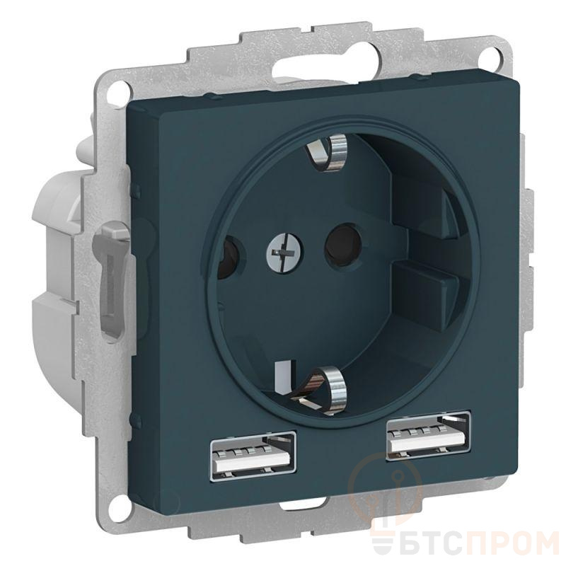 Розетка силовая Systeme Electric (ранее Schneider Electric) серии AtlasDesign 16А (цвет изумруд) с заземлением и шторками с розеткой USB, с друмя разъемами типа А. - Лицевые детали из качественного ABS-пластика, устойчивого к царапинам и УФ-излучению. - Заземляющий контакт обеспечивает дополнительную защиту от удара электрическим током. - Шторки обеспечивают дополнительную безопасность в доме, где находятся дети. - Одно устройство позволяет как подключить бытовые приборы, так и зарядить мобильные устройства.