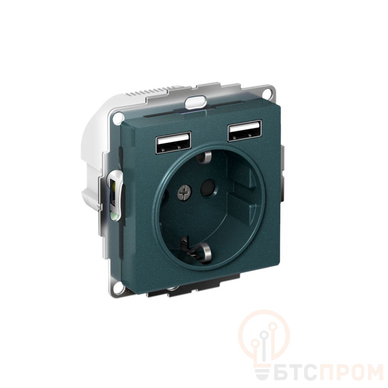 Механизм выполнен в стильном изумрудном цвете, имеет степень защиты IP20, что делает его идеальным для использования в жилых комнатах, прихожих и офисах — везде, где требуется надежное и удобное подключение электроники. Установив эту розетку, вы получаете аккуратную и функциональную точку доступа к электросети без необходимости использования дополнительных адаптеров.
