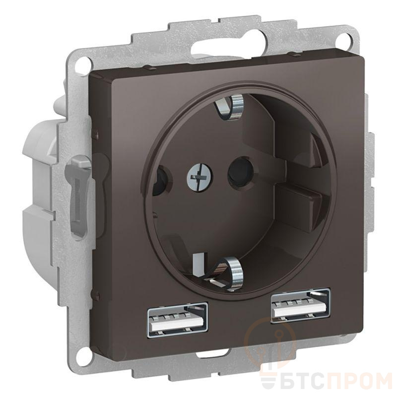 Розетка 1-м СП AtlasDesign 16А IP20 с 2-мя заряд. устройствами USB тип A+A 5В/2.4А 2х5В/1.2А механизм мокко SE ATN000630