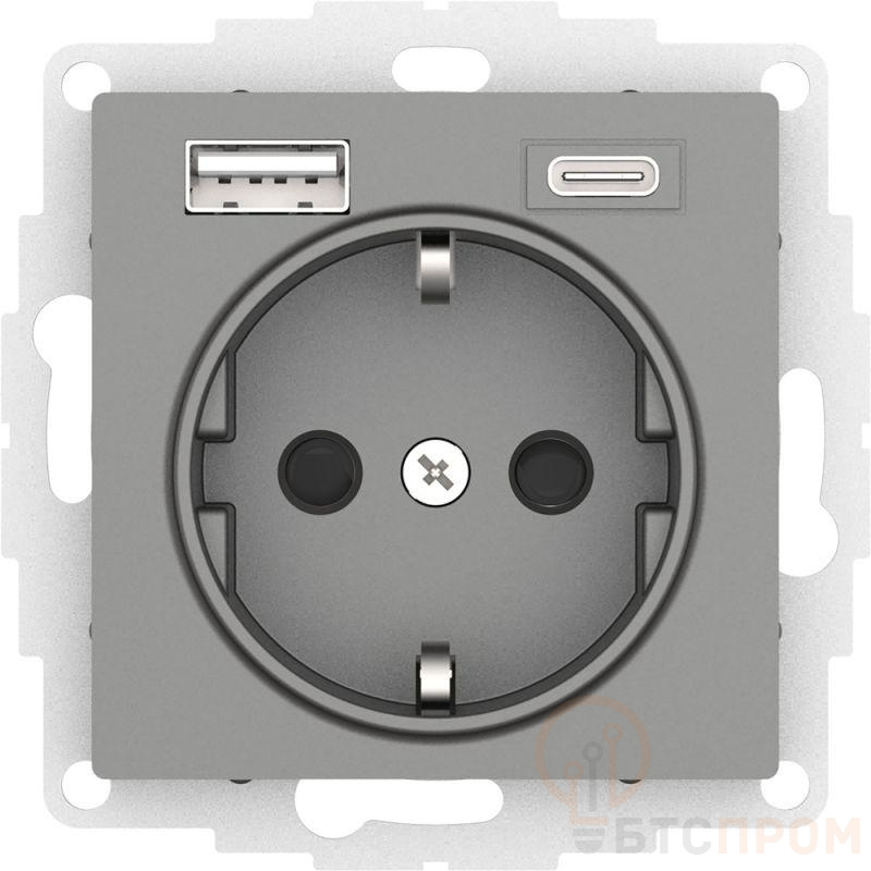 Розетка силовая Systeme Electric (ранее Schneider Electric) серии AtlasDesign 16А (цвет сталь) с заземлением и шторками с розеткой USB, с двумя разъемами тип А и тип С. Розетка совмещает в себе сразу 3 функции в одном изделии. Удобное и современное решение для дома, офиса и других помещений. - Лицевые детали из качественного ABS-пластика, устойчивого к царапинам и УФ-излучению. - Заземляющий контакт обеспечивает дополнительную защиту от удара электрическим током. - Шторки обеспечивают дополнительную безопасность в доме, где находятся дети. - Одно устройство позволяет как подключить бытовые приборы, так и зарядить мобильные устройства.