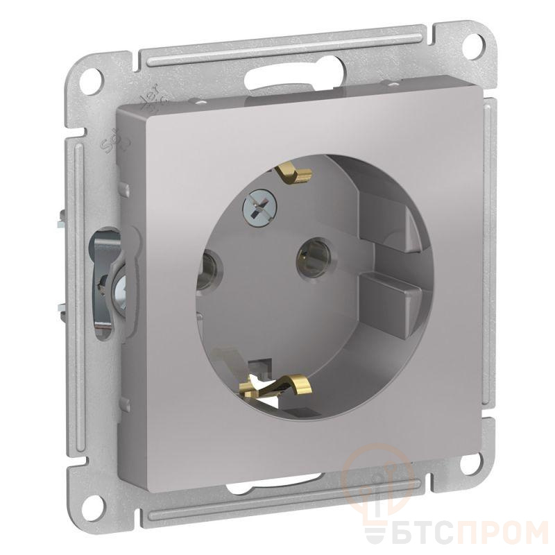 Механизм Systeme Electric (ранее Schneider Electric) серии AtlasDesign в цвете алюминий розетки одинарной с заземлением и без шторок подходит для сетей 250 В, на ток 16 А. - Заземляющий контакт обеспечивает дополнительную защиту от удара электрическим током. При наличии заземления электрический потенциал уходит в землю, защищая человека. - Лицевые детали из качественного ABS-пластика, устойчивого к царапинам и УФ-излучению. - Усиленные прямые монтажные лапки для лучшей фиксации механизма в монтажной коробке.