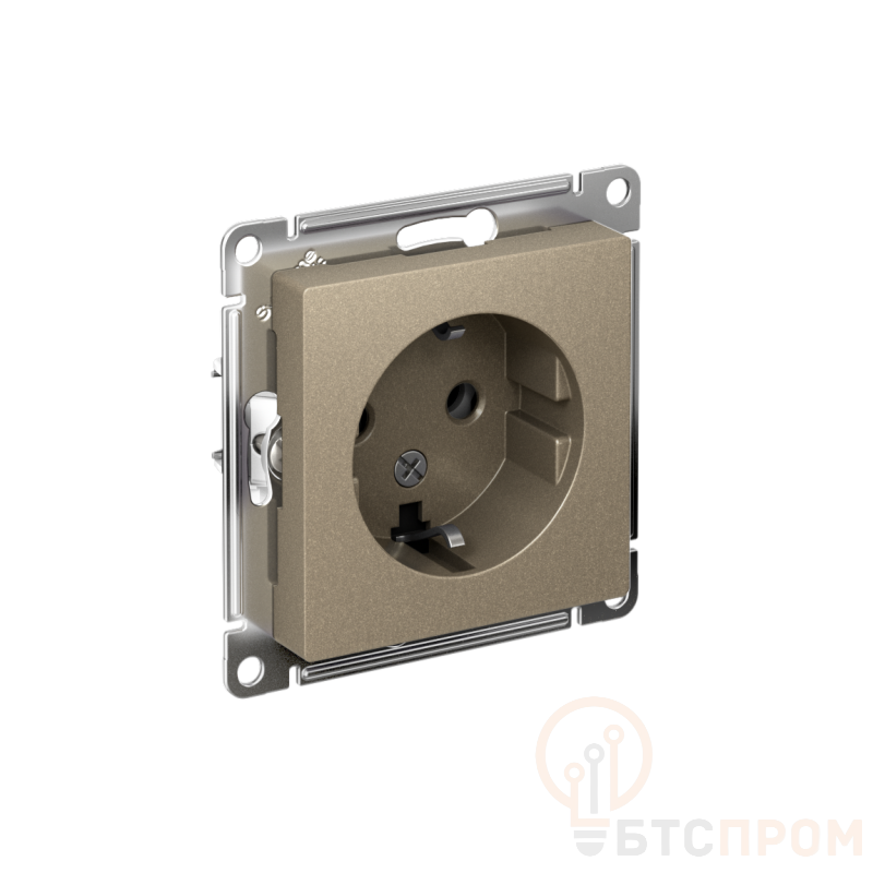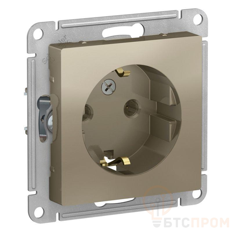 Механизм Systeme Electric (ранее Schneider Electric) серии AtlasDesign в цвете шампань розетки одинарной с заземлением и без шторок подходит для сетей 250 В, на ток 16 А. - Заземляющий контакт обеспечивает дополнительную защиту от удара электрическим током. При наличии заземления электрический потенциал уходит в землю, защищая человека. - Лицевые детали из качественного ABS-пластика, устойчивого к царапинам и УФ-излучению. - Усиленные прямые монтажные лапки для лучшей фиксации механизма в монтажной коробке.