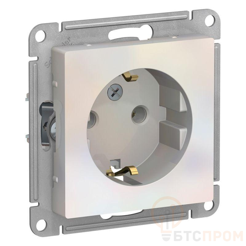Механизм Systeme Electric (ранее Schneider Electric) серии AtlasDesign в цвете жемчуг розетки одинарной с заземлением и без шторок подходит для сетей 250 В, на ток 16 А. - Заземляющий контакт обеспечивает дополнительную защиту от удара электрическим током. При наличии заземления электрический потенциал уходит в землю, защищая человека. - Лицевые детали из качественного ABS-пластика, устойчивого к царапинам и УФ-излучению. - Усиленные прямые монтажные лапки для лучшей фиксации механизма в монтажной коробке.