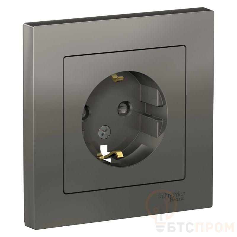 Розетка Systeme Electric (ранее Schneider Electric) серии AtlasDesign (в сборе, цвет сталь) одинарная с заземлением и без шторок подходит для сетей 250 В, на ток 16 А. - Заземляющий контакт обеспечивает дополнительную защиту от удара электрическим током. При наличии заземления электрический потенциал уходит в землю, защищая человека. - Лицевые детали из качественного ABS-пластика, устойчивого к царапинам и УФ-излучению. - Изделие поставляется в комплекте с рамкой того же цвета.