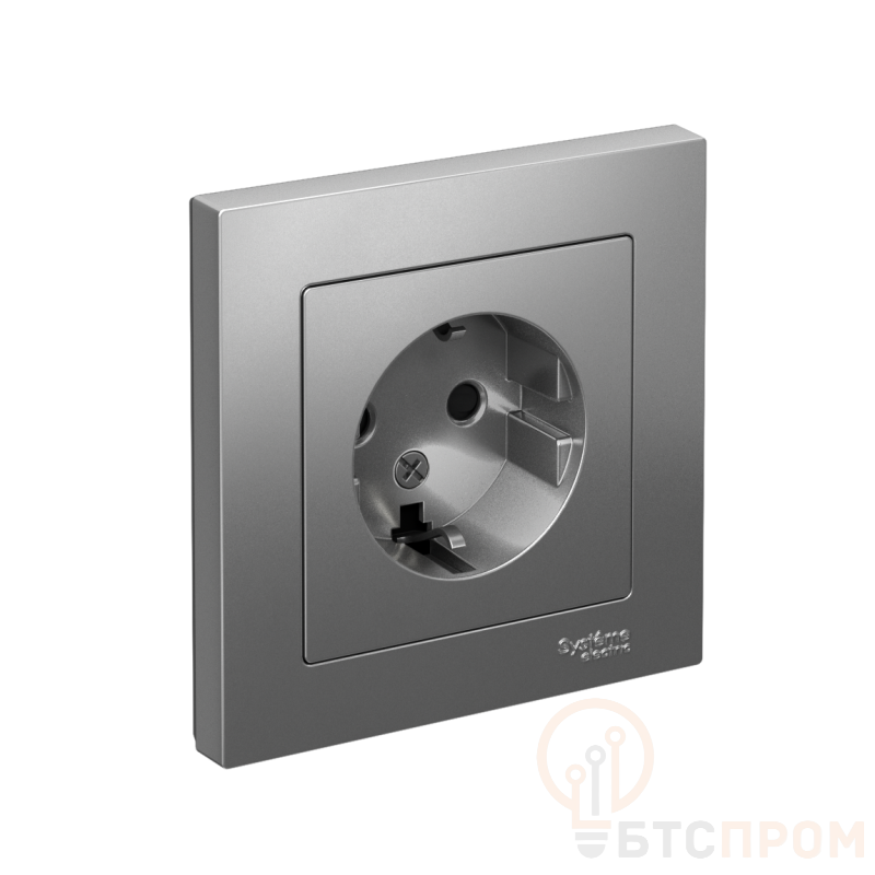 Розетка в сборе Systeme Electric (ранее Schneider Electric) серии AtlasDesign в цвете сталь одинарная с заземлением и без шторок подходит для сетей 250 В, на ток 16 А. Заземляющий контакт обеспечивает дополнительную защиту от удара электрическим током. При наличии заземления электрический потенциал уходит в землю, защищая человека. Лицевые детали из качественного ABS-пластика, устойчивого к царапинам и УФ-излучению. Изделие поставляется в комплекте с рамкой того же цвета.