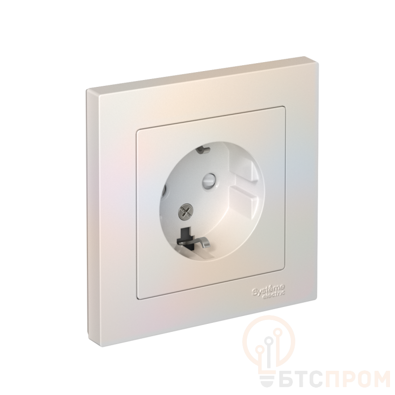 Розетка в сборе Systeme Electric (ранее Schneider Electric) серии AtlasDesign в цвете жемчуг одинарная с заземлением и без шторок подходит для сетей 250 В, на ток 16 А. Заземляющий контакт обеспечивает дополнительную защиту от удара электрическим током. При наличии заземления электрический потенциал уходит в землю, защищая человека. Лицевые детали из качественного ABS-пластика, устойчивого к царапинам и УФ-излучению. Изделие поставляется в комплекте с рамкой того же цвета.