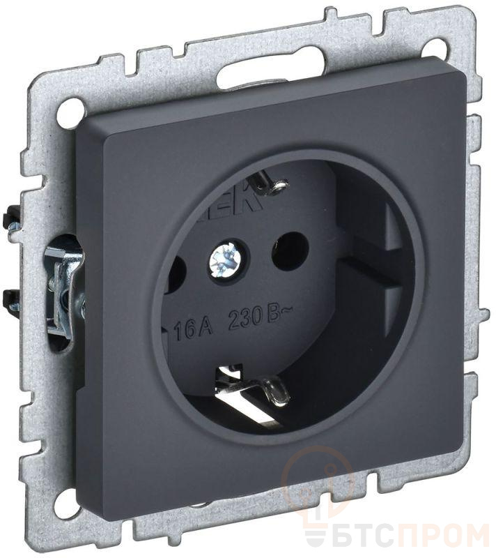 Розетка 1-м СП BRITE РС11-1-0-БрГ 16А с заземл. без защ. шторки механизм графит IEK BR-R11-16-K53 фото в каталоге от BTSprom.by