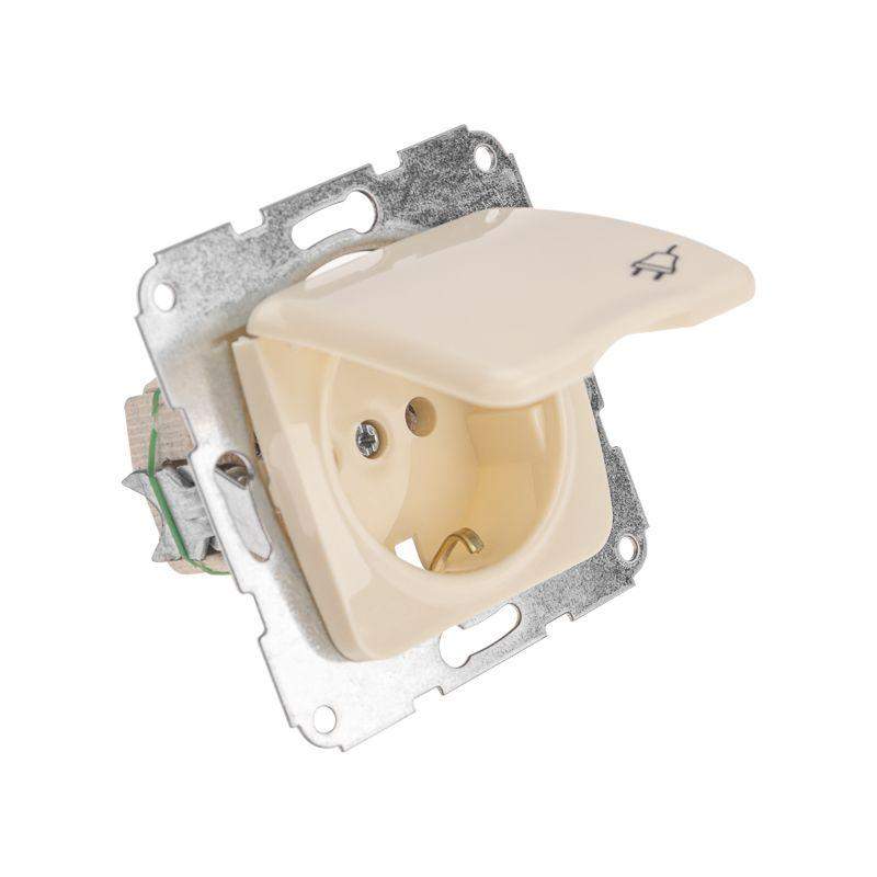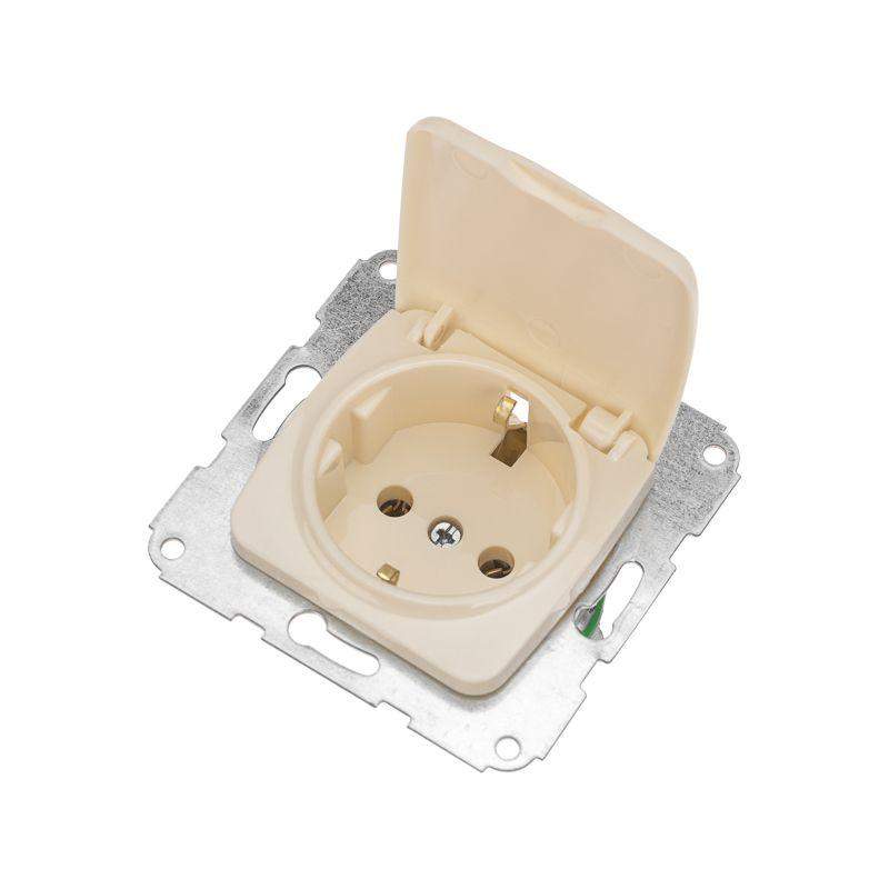 Розетка 1-м СП DEA 16А с заземл. с крышкой керамика механизм беж. Kranz KR-78-0246 фото в каталоге от BTSprom.by