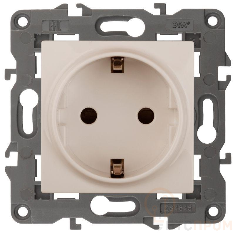 Розетка 1-м СП Эра Elegance 14-2102-02 16А IP20 16AX 250В 2P+E Schuko защ. шторки сл. кость Эра Б0034273