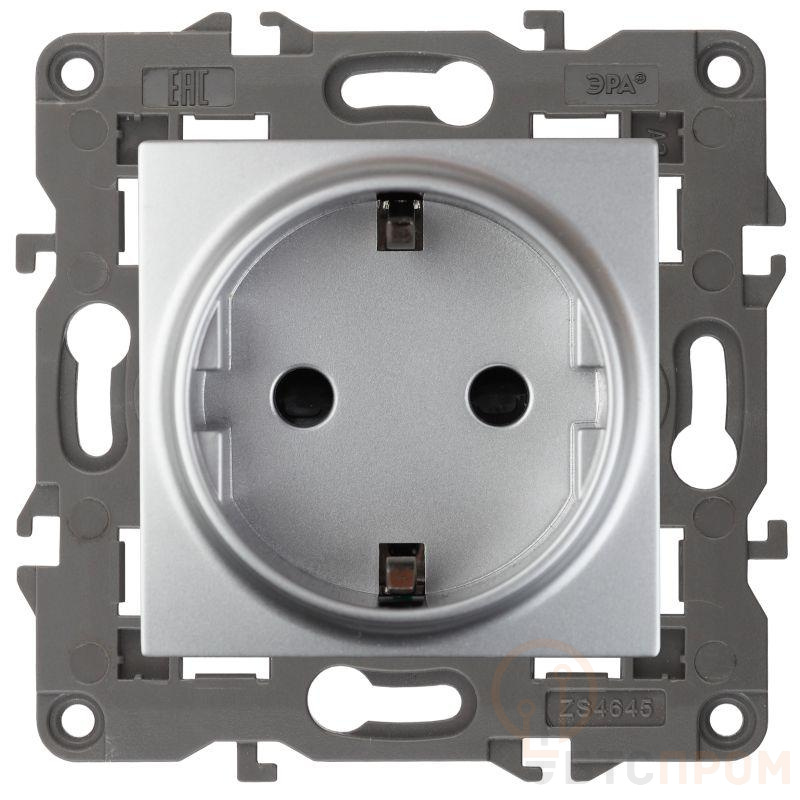 Розетка 1-м СП Эра Elegance 14-2102-03 16А IP20 16AX 250В 2P+E Schuko защ. шторки алюм. Эра Б0034274