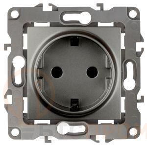 Розетка 2P+E Schuko, 16АХ-250В, без м.лапок, Эра12, графит