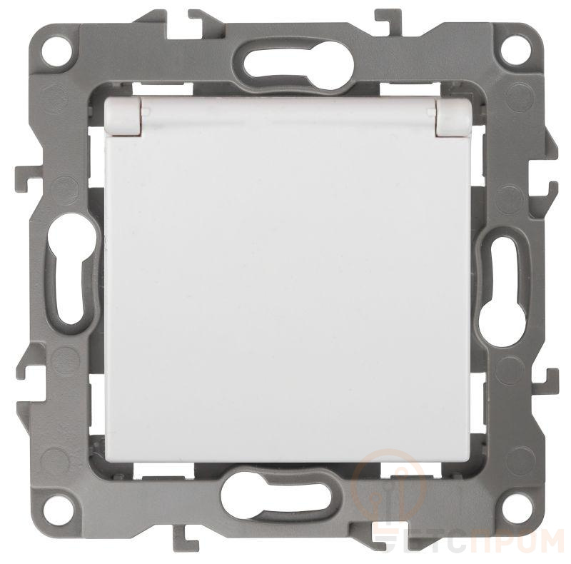 Розетка 2P+E Schuko со шторками с крышкой, 16А-250В, б.л., Эра12, белый