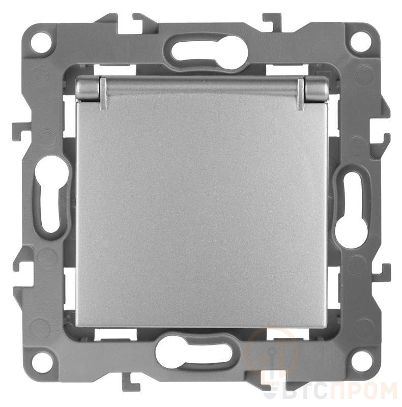Розетка 1-м СП Эра12 12-2103-03 16А IP20 16AX 250В 2P+E Schuko защ. шторки с крышкой механизм алюм. Эра Б0014695