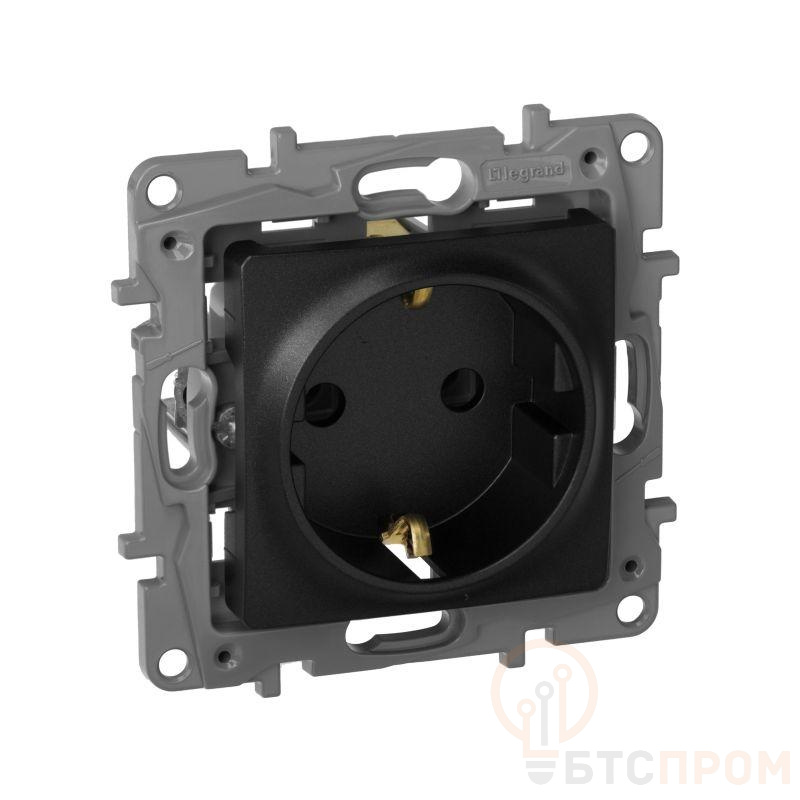 Розетка 1-м СП Etika 16А IP20 250В 2P+E с заземл. немецк. стандарт винтов. клеммы механизм антрацит IEK 672621