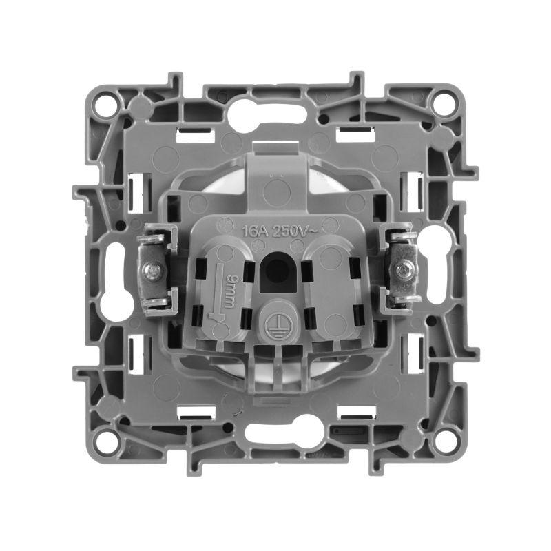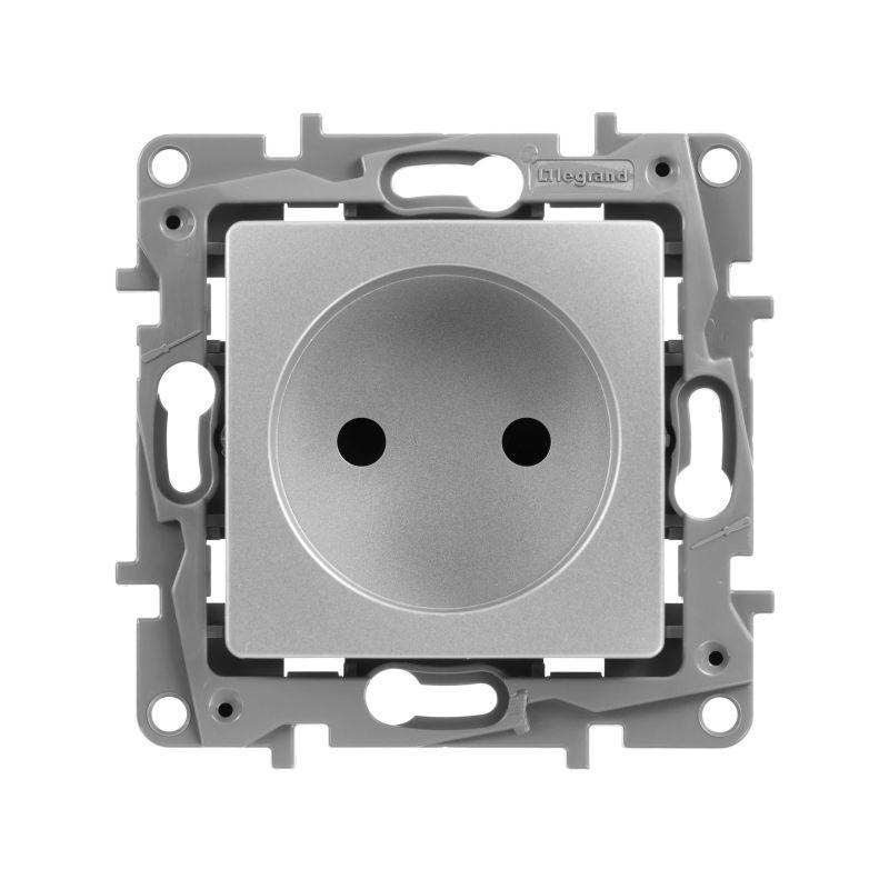 Розетка без заземления ETIKA для скрытого монтажа. Применяется в зданиях с проводкой без заземления (без защитного проводника). Рекомендуются к применению в квартирах и помещениях с детьми. Шторки осуществляют защитную функцию путём ограничения доступа к токоведущим контактам. Доступ открывается только при подключении вилки.