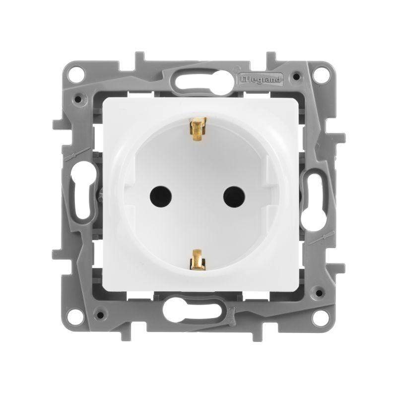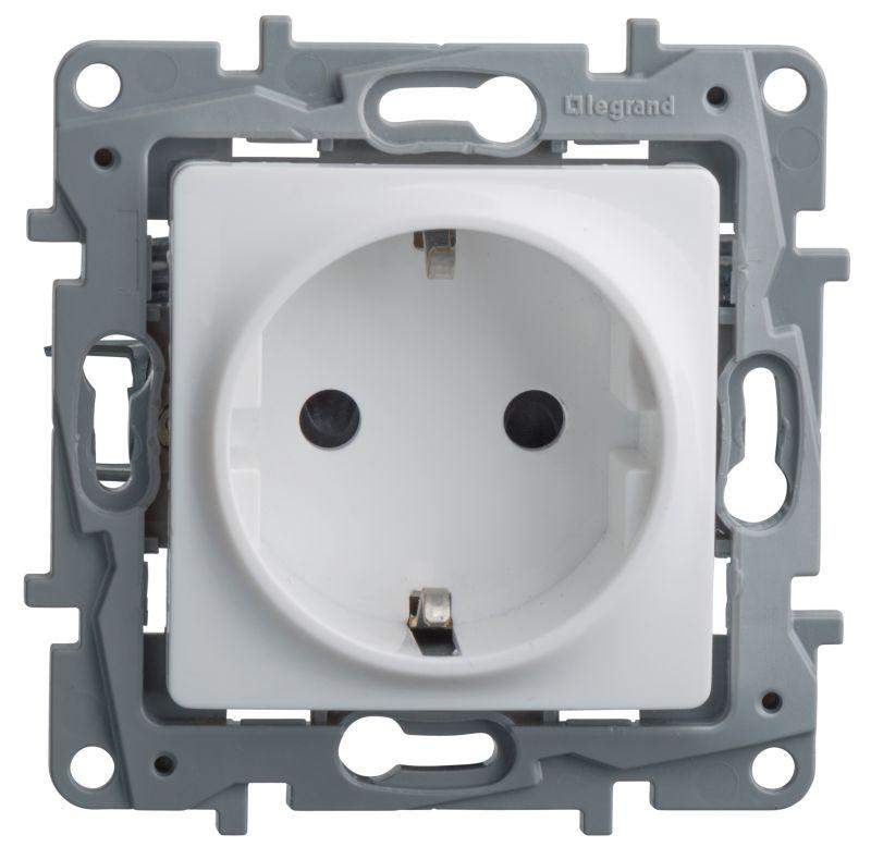Розетка с заземлением и защитными шторками ETIKA для скрытого монтажа. Применяется в зданиях, оборудованных для повышения безопасности проводкой с заземлением (с защитным проводником). Рекомендуются к применению в квартирах и помещениях с детьми. Шторки осуществляют защитную функцию путём ограничения доступа к токоведущим контактам. Доступ открывается только при подключении вилки.