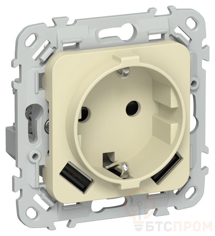 Розетка 1-м СП FLITE РСЮша11-0-ФлН 16А с USB A+A 3.1А с заземл. с защ. шторками механизм навахо IEK FI-R14-16-U21-D31-K87