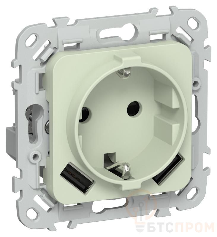 Розетка 1-м СП FLITE РСЮша11-0-ФлП 16А с USB A+A 3.1А с заземл. с защ. шторками механизм панг IEK FI-R14-16-U21-D31-K92