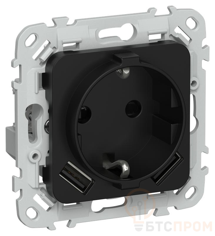 Розетка 1-м СП FLITE РСЮша11-1-ФлЧ 16А с USB A+A 3.1А с заземл. с защ. шторками безвинтовое крепление механизм черн. IEK FI-R14-16-1-U21-D31-K02