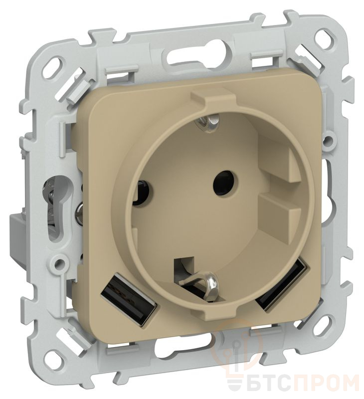 Розетка 1-м СП FLITE РСЮша11-1-ФлХ 16А с USB A+A 3.1А с заземл. с защ. шторками безвинтовое крепление механизм хаки IEK FI-R14-16-1-U21-D31-K59